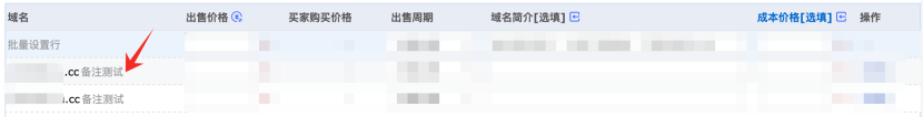 批量发布域名页面,如所选域名包含备注,页面将同步显示,更加方便您进行域名定价与管理。