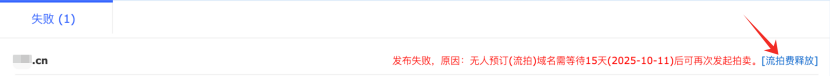 十、功能优化【无人预订域名支付流拍费即可立即释放】