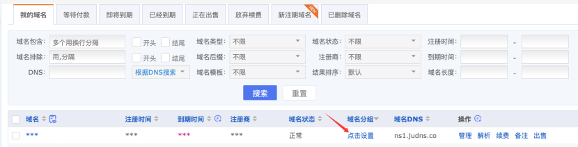 我的域名列表中,若域名尚未分组,您将可直接操作【点击设置】,进入“设置分组”页面,操作更便捷。